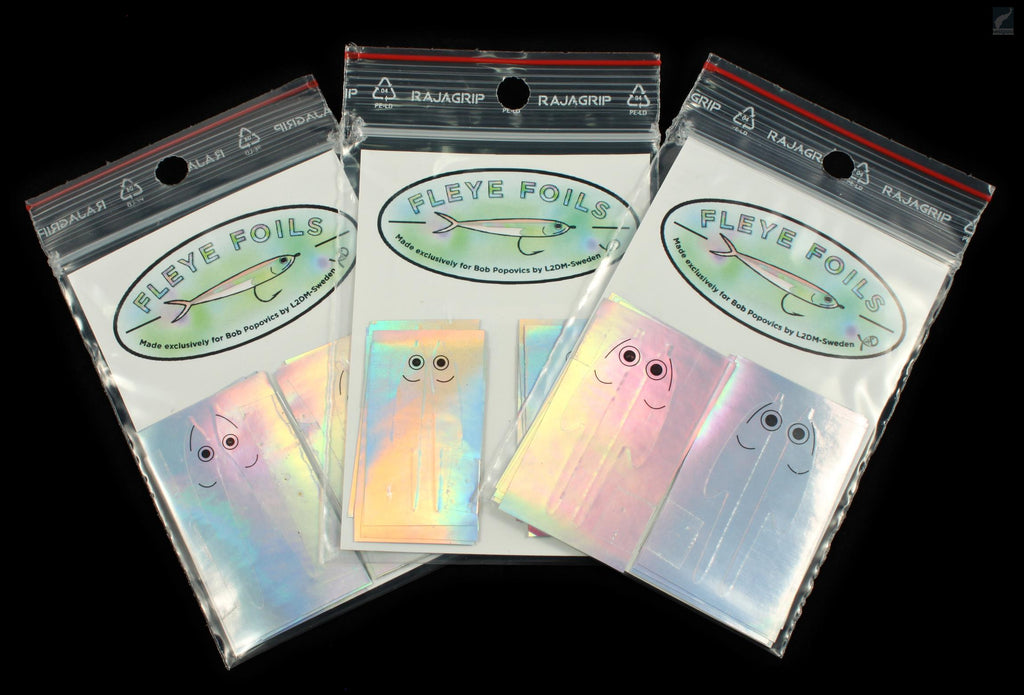 Bob Popovics' Fleye Foil serves as a body material ideal for streamers and saltwater baitfish flies. Each piece is pre-cut and comes with an adhesive backing for straightforward application. To achieve the best results, apply the foil last by securing it with tying thread from the fly’s front section to its head, then seal the body with UV glue or epoxy. This technique effectively enhances streamer patterns like Surf Candy with a natural shine and lifelike appearance.